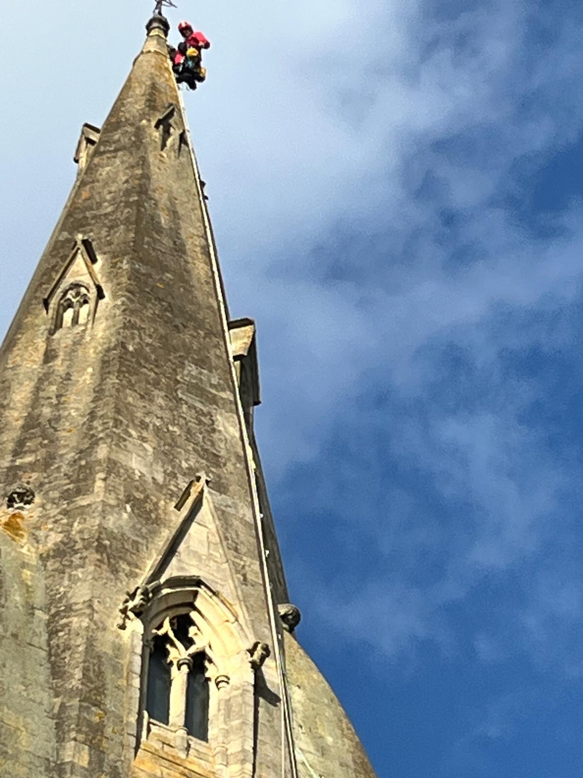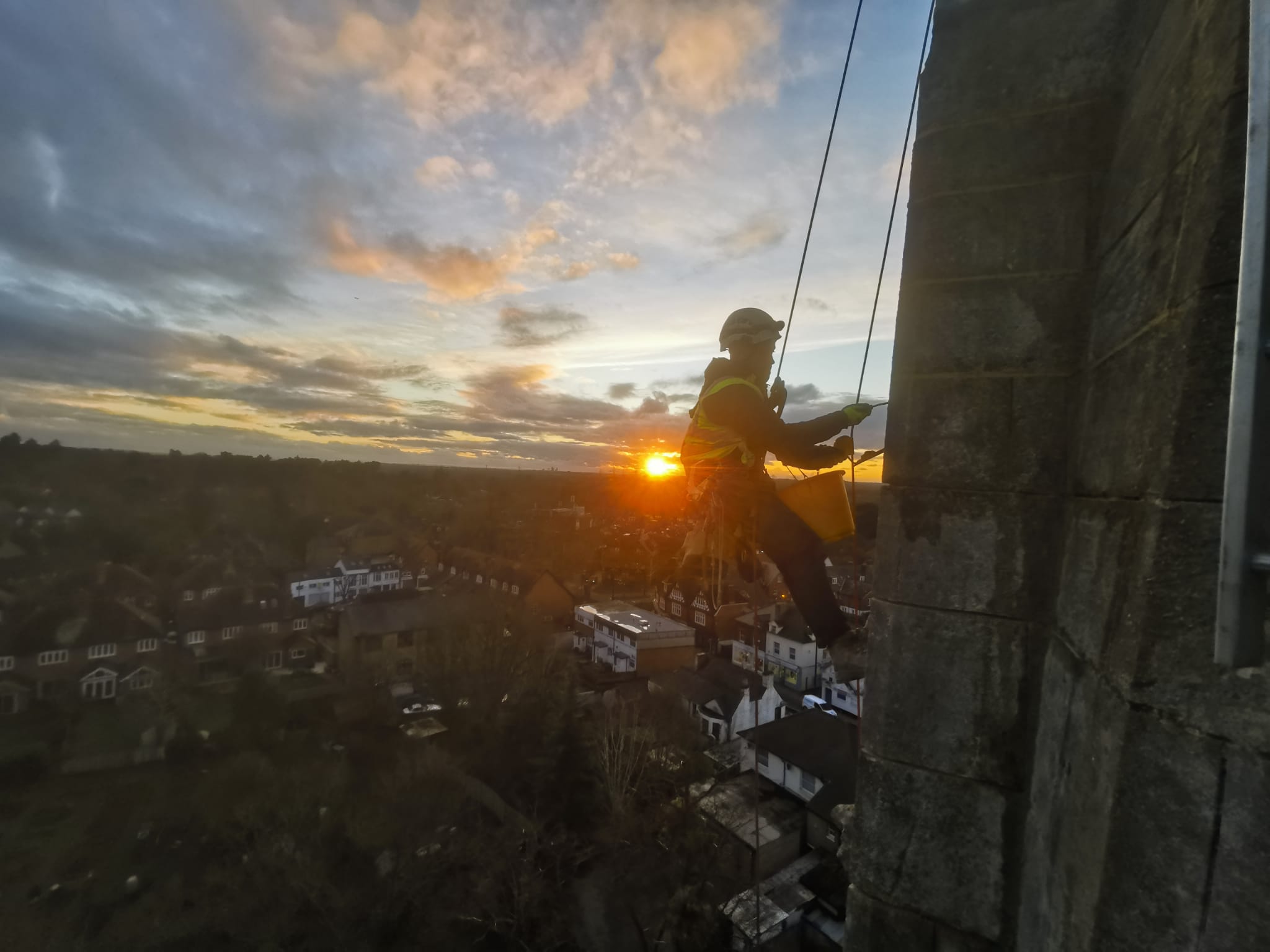 £40k in 2024 – Tower/Spire Pointing Project and the Parochial Church Council set aside this money in a Diocesan secure ‘restricted’ fund for this purpose. This donation from The Friends of St James’ followed recommendations for works to the Spire found in the 2024 Quinquennial Inspection Report. In Autumn 2024 the PCC appointed Wall Walkers to carry out a full and thorough inspection of the Tower and Spire, which identified some significant pointing and stone works are required. In early 2025, the PCC used its own funds to appoint the Church architect (John Bailey of Thomas Ford & Partners) to prepare a schedule of works, based on the report received. In late summer 2025, several specialist firms were invited to bid to complete this work. In November 2025 JP Conservation were appointed as the main contractor. The faculty process was completed in January 2026 and work began in earnest immediately, without the need for scaffolding significant areas of the Tower and Spire. The total height of St James’ Spire is 150feet – no wonder it is described as “The Cathedral of the Thames Valley” – one of the tallest structures in north west Surrey (only beaten by a roller coaster at Thorpe Park!)